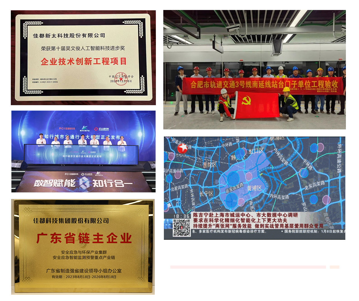 佳都为广东省首批战略性产业集群重点产业链链主、广州市人工智能和轨道交通“双链主”企业,以“三链主”身份引领产业链发展。与广州地铁联合打造了全球首座AI智慧车站,在广州地铁18号线实现了我国首例模块化装配式站台门应用,并联合中标了长沙地铁超过100亿元项目。以佳都为代表的人工智能产业共同体,共有人工智能产业链企业超150家,其中达到上市估值标准的企业10家,包括一批行业领先的独角兽企业。